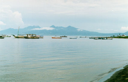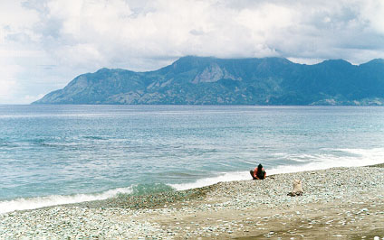 We decided to have a swim. In 1992, Maumere was destroyed by an earthquake and tidal wave, and most of its beaches have been wrecked. The water was clear, but grey from the black soil. It was very warm, because it was very shallow out for more than one hundred metres. Also, the beach was filthy, so we didn't stay long.