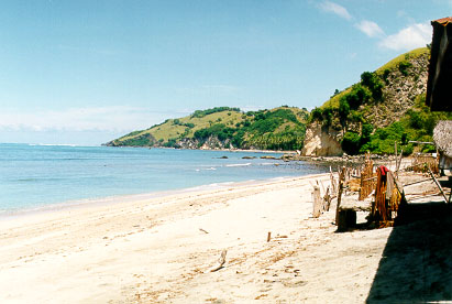 We packed and set off for Maumere. Again, when we stopped to stretch our legs, we hit pay dirt. We walked out on to one of the most beautiful beaches imaginable, with a poor village perched along it.