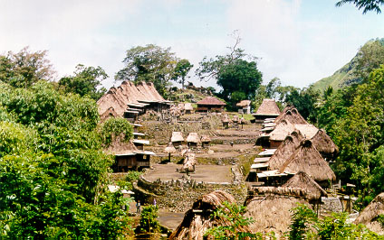 Asiz stopped and pointed out a road being constructed up in to the village of Luba. We walked in, and found a much nicer place than Langda. Despite the totems everywhere, a young lady assured us that the villagers were "seratus percent Catholic" (100%). It was a short walk back to the main local tourist attraction of Bena, with a proliferation of totems, and nearly every house selling ikat weaving.