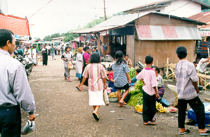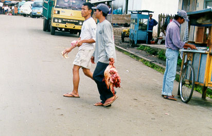 A walk around town, and through the market, indicated that the local gene pool had shrunk to a puddle. We dined at the Camellia restaurant across the road from the hotel. The food was okay, and there were a couple of other tourists present. However, every would-be tour guide in the town turned up to tout, including Phillip. Helen's Bahasa Indonesia skills seemed to be, for once, a disadvantage, because they all wanted to talk to her. We eventually got the message across that we were well catered for by Asiz.