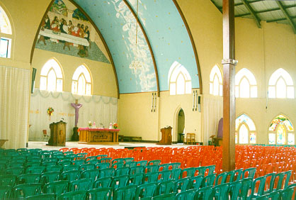 The screams from the mandi the next morning were followed by a tolerable breakfast of banana pancake and coffee. We had another walk around the market. We found a nice Catholic church, and had a look inside, and a chat with the Indian priest, who had had the church built during his eighteen years in Bajawa.