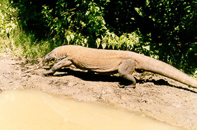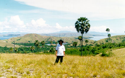 We found some water buffalo wallowing beside the track, and, a bit further on, encountered a huge monitor lizard, at least 3m long. The ranger said it was probably the largest on the island. We didn't see any more dragons, except for the ones that hung around the Park office. Up on the highest point of the island we met 20% of the other tourists on the island, a Dutchman called Ricky, who spends seven months a year in Bedugal, Bali, with his Balinese wife. We had an interesting exchange of Indonesian experiences.