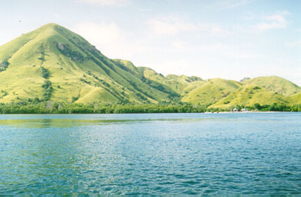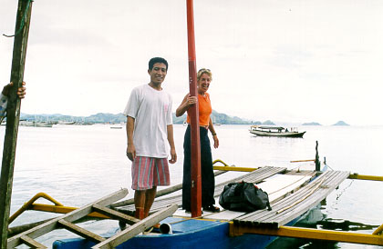 I was very tired in the morning, when I was woken by the chug-chug of fishing boats as they made their dawn trip across the bay. My kapok mattress and concrete pillow didn't make for a sound sleep. After a mandi, we had breakfast - a fried banana sandwich, a boiled egg, a banana and tea. Coffee was "habis" (finished). Our boat to Rinca arrived, with Michael and Geoffery. We negotiated the outrageous price of Rp 900,000 (~A$195) for a Kijang and driver for four days, to negotiate the trans-Flores highway. We handed over Rp200,000 deposit, and then boarded the boat, sans Michael and Geoffery, for Rinca.