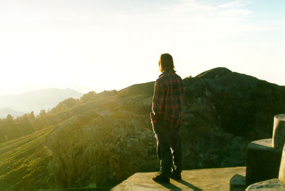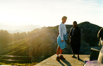 At 4.30am we rose and dressed. We found the truck, and the drivers appeared. Off we went up the mountain to Kelimutu. A shadow joined us. "Don" told Helen he was going up for a look. Once there, we had a fifteen-minute walk. Don, it seemed, was a coffee and tea seller, and we were joined by another.