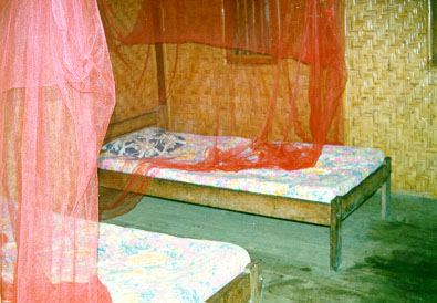 Our hosts gave us a hurricane lamp, and we went to our bungalow and hit the sack. There was nothing else to do. We were the only guests, apart from an Indonesian chap who claimed to be from the town, and wasn't about much at all.